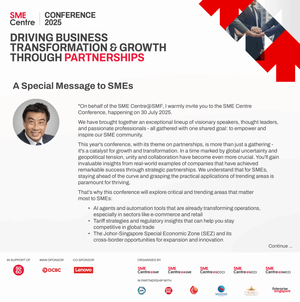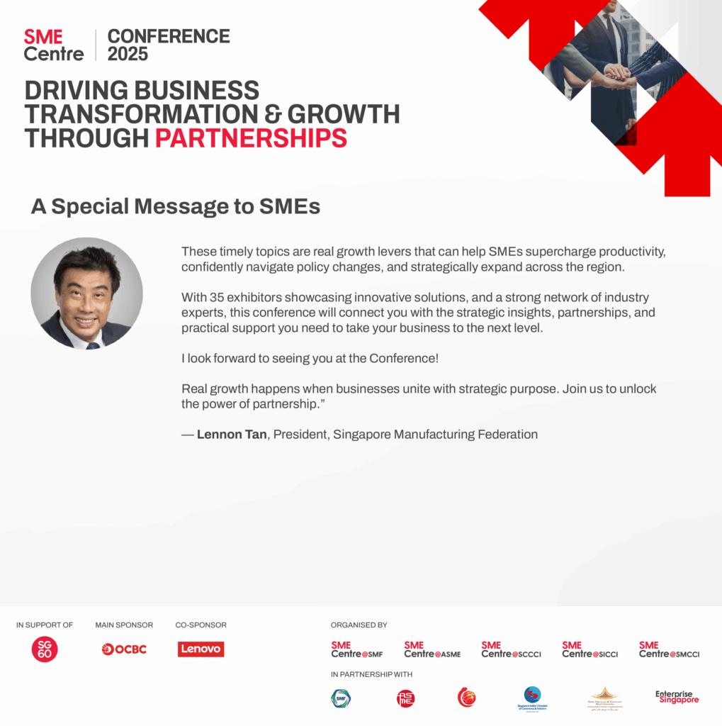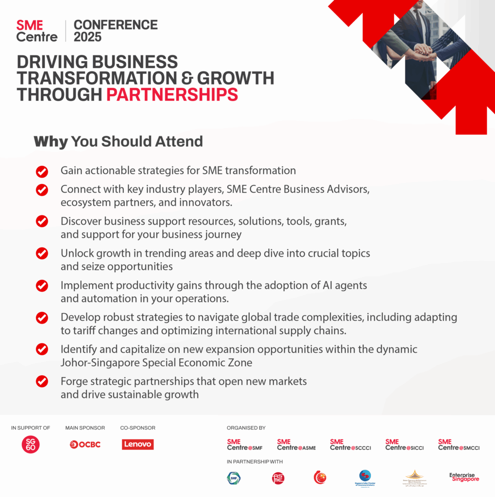 SME Centre Conference 2025 is back on 30 July at Sands Expo & Convention Centre and grab your tickets now at $48!