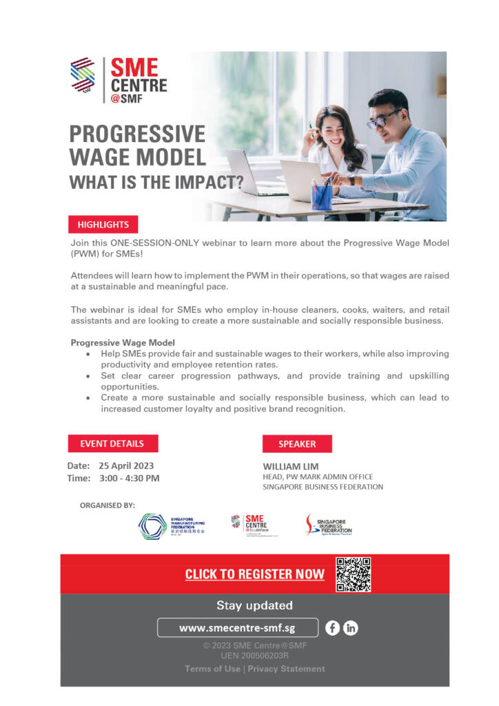 Join this ONE-SESSION-ONLY webinar to learn more about the Progressive Wage Model (PWM) for SMEs!